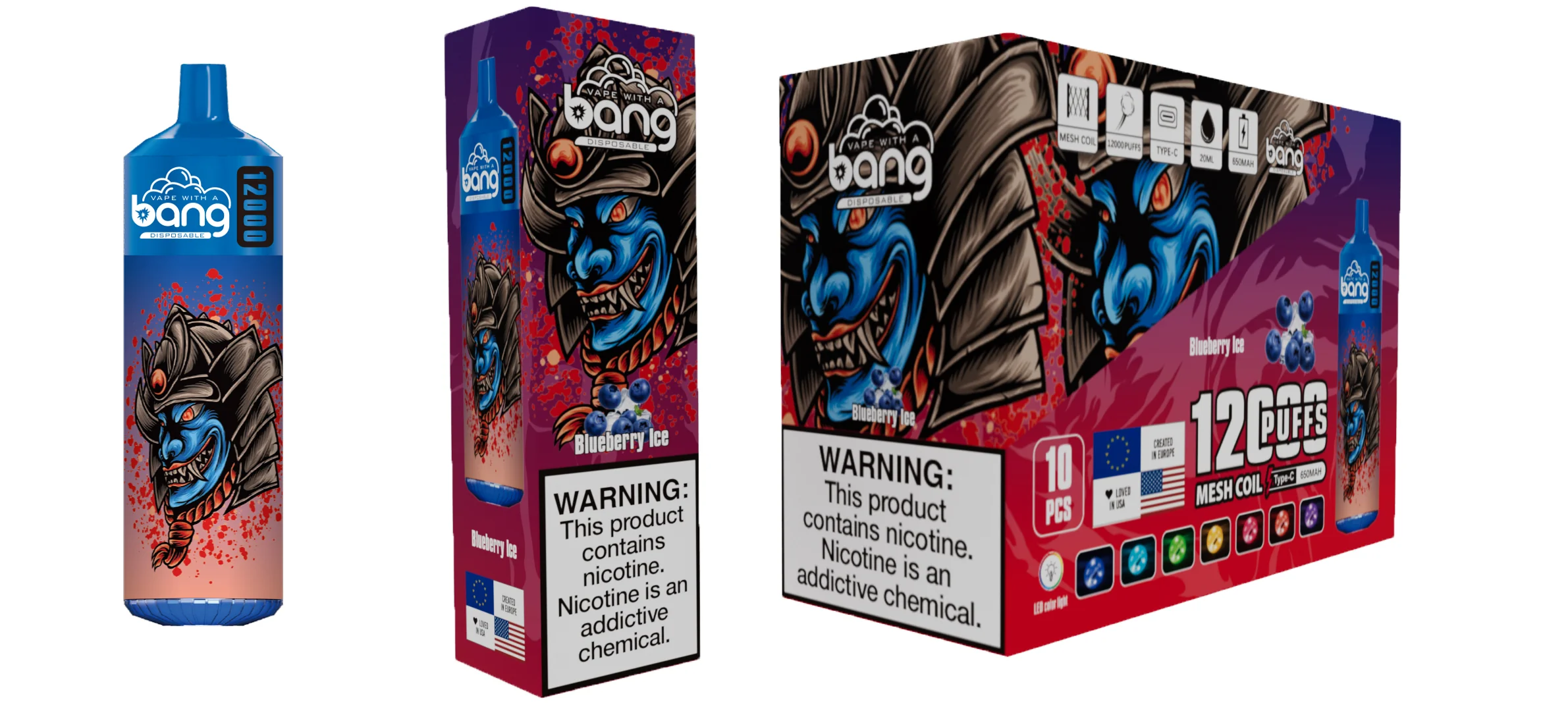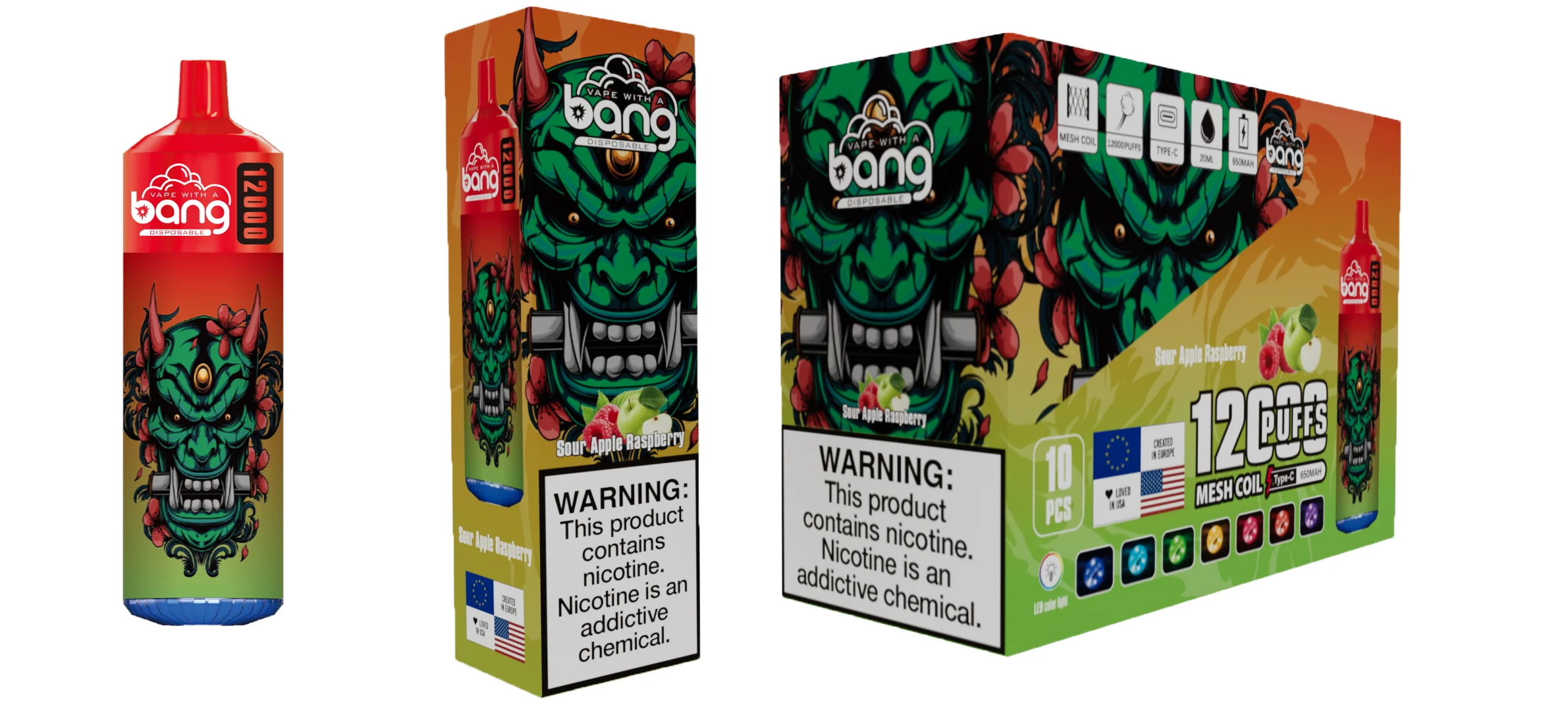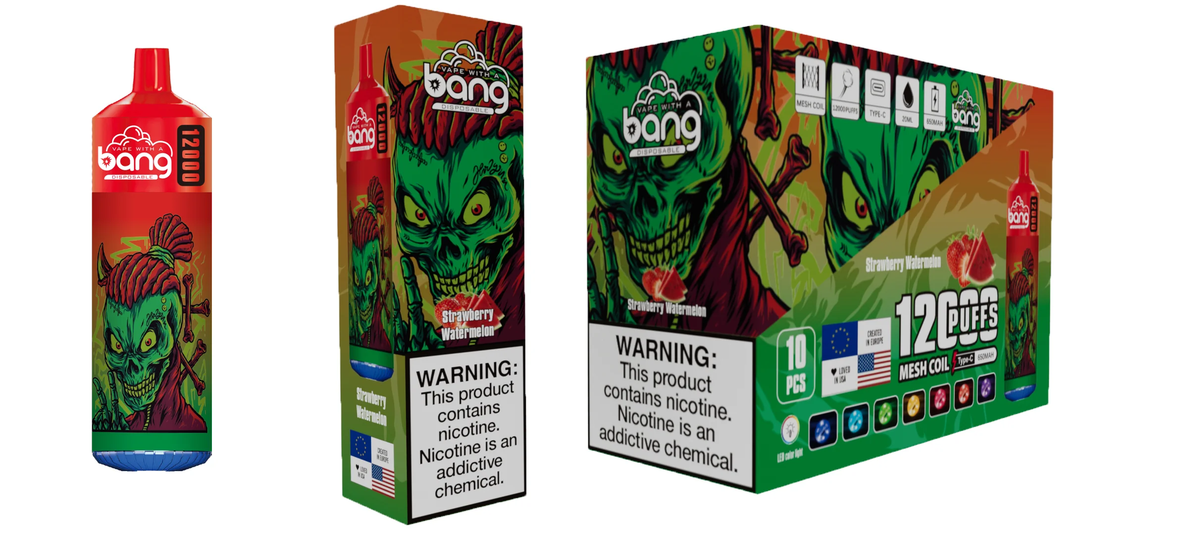 Bang 12000 Puffs, Disposable Vape E-cigarettes, 20 Kinds of Fruits Flavors, 20ml Capacity, 650 MAH Battery, Type C Rechargeable