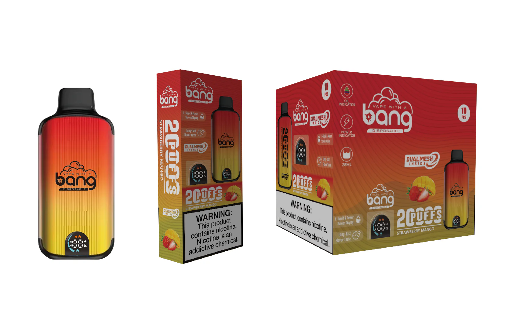 Bang 20000 Puffs, Disposable Vape E-cigarettes, 16 Kinds of Fruits Flavors, 28ml Capacity, 650 MAH Battery, Type C Rechargeable